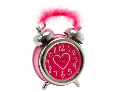 Alarm clock with fluffy pink handle Pink face with contrasting white numbers Measures Fluffy pink handle Pink face Contrasting white numbers Measures 6 by 3 by 8-Inch Requires 2 AA batteries not included Read More..